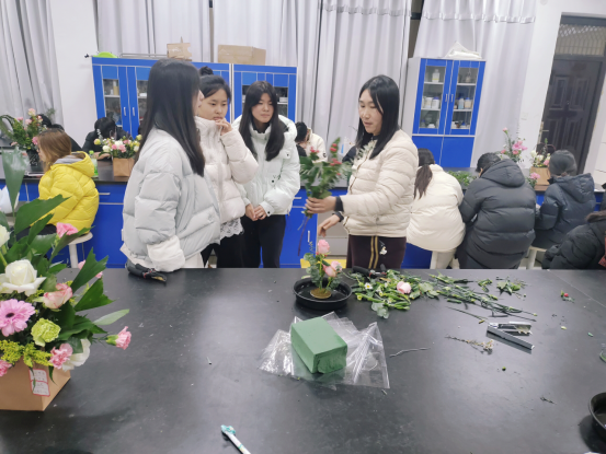 冬日校园寒意渐浓,我院园艺园林专业的实训教室里却暖意融融、花香四溢。12 月23日,石娜老师带领同学们开展插花实训课,大家以花为媒、以枝为笔,在指尖翻飞间勾勒出园艺的独特韵味。